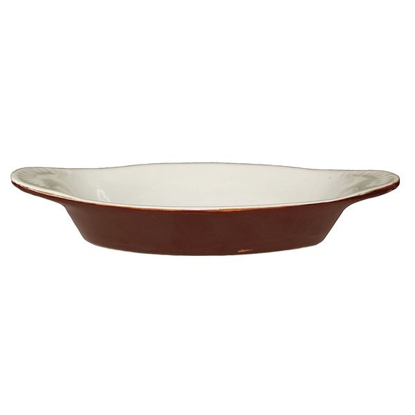 Rarebit, Overall Length 10 in, Material Vitrified Stoneware, Color American White/Brown, Freezer Safe No, NSF Certified No, Oven Safe Yes, Product Type Rarebit, Capacity 12 oz, Dishwasher Safe Yes, Overall Width 5 3/8 in, Overall Depth 1 1/2 in, Package Quantity 36