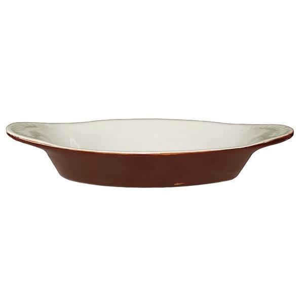 Rarebit, Overall Length 8 1/2 in, Material Vitrified Stoneware, Color American White/Brown, Freezer Safe No, NSF Certified No, Oven Safe Yes, Product Type Rarebit, Capacity 8 oz, Dishwasher Safe Yes, Overall Width 4 1/8 in, Overall Depth 1 1/4 in, Package Quantity 36