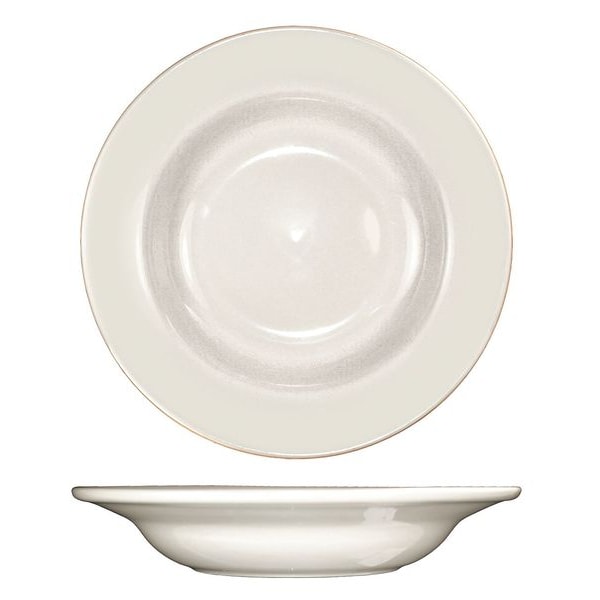 Rimmed Soup Bowl, Color American White, Diameter 8 7/8 in, Overall Width Not Applicable, Overall Length Not Applicable, Overall Height 1 5/8 in, Product Type Rimmed Soup Bowl, Capacity 10 oz, Material Stoneware, Edge Style Wide Rim Rolled, Pattern Roma, Package Quantity 24