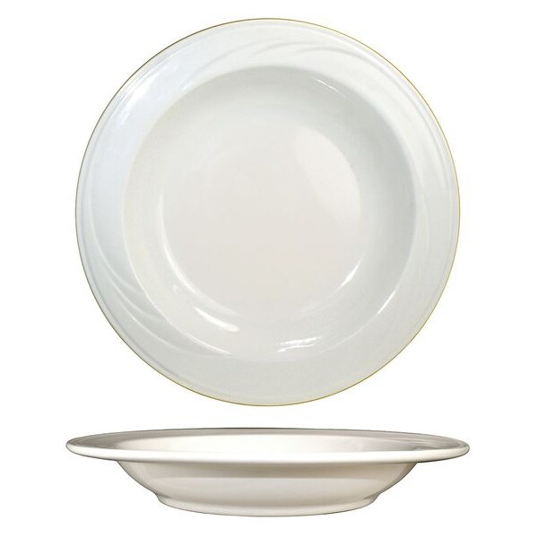 Rimmed Soup Bowl, Color American White, Diameter 9 in, Overall Width Not Applicable, Overall Length Not Applicable, Overall Height 1 3/8 in, Product Type Rimmed Soup Bowl, Capacity 16 oz, Material Stoneware, Edge Style Rolled, Pattern York, Package Quantity 12