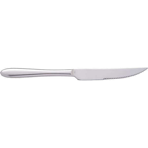Steak Knife, Product Type Steak Knife, Color Silver, Material Stainless Steel, Overall Length 9 in, Pattern Luminosity, Stainless Steel Grade 18/0, Package Quantity 12