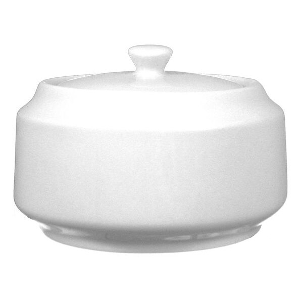 Sugar Bowl, Color European White, Diameter 4 1/2 in, Overall Width Not Applicable, Overall Length Not Applicable, Overall Height 3 3/8 in, Product Type Sugar Bowl, Capacity 13 oz, Material Porcelain, Pattern Dover, Package Quantity 12