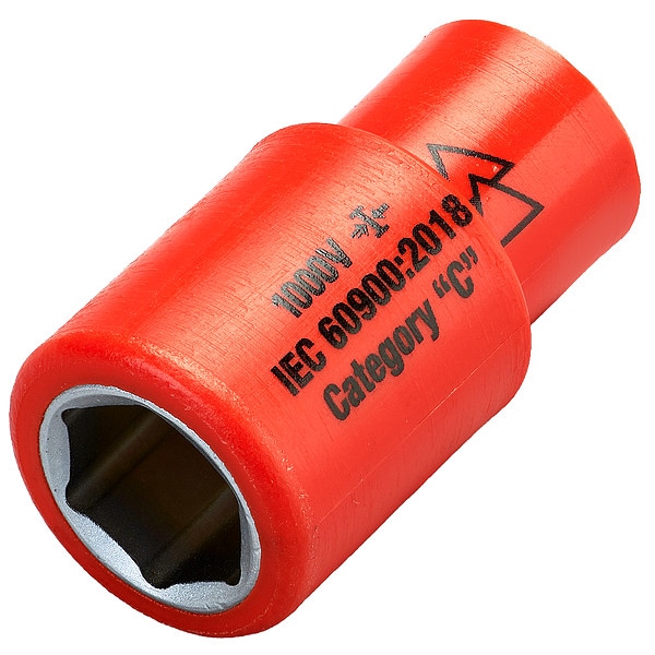 Insulated Socket, Socket Size 13 mm, 33/64 in, 6-Point, Steel, Chrome, Standard, Hand, Drive Size 1/4 in, Metric, Impact Rated No, Bolt Clearance 1/2 in, Standards ASTM F1505, IEC 60900