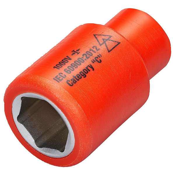 Insulated Socket, Socket Size 14 mm, 35/64 in, 6-Point, Steel, Chrome, Standard, Hand, Drive Size 1/4 in, Metric, Impact Rated No, Bolt Clearance 1/2 in, Standards ASTM F1505, IEC 60900