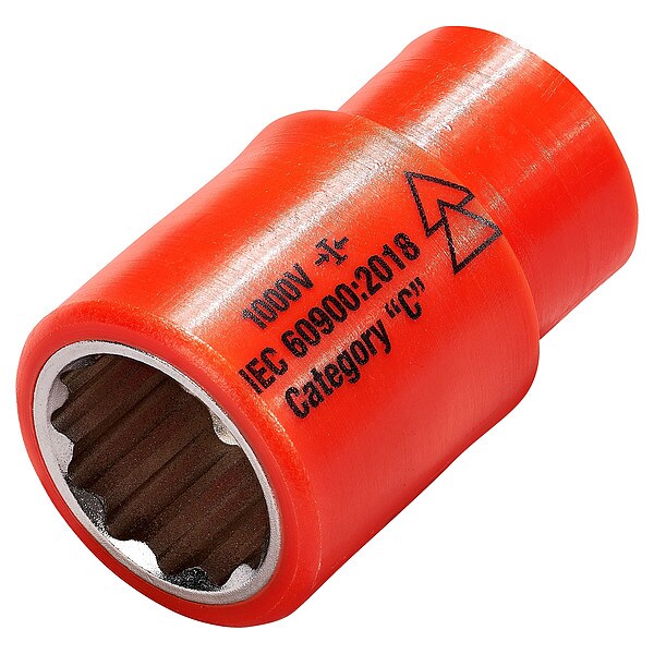 Insulated Socket, Socket Size 5/8 in, 12-Point, Nylon Thermoplastic, Steel, Chrome, Standard, Hand, Drive Size 3/8 in, SAE, Impact Rated No, Bolt Clearance 17/32 in, Standards ASTM F1505, IEC 60900:2012