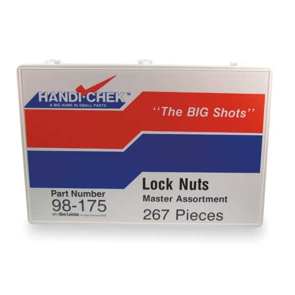 Hex Locknut Assortment, Dimensional Standards Not Applicable, Hex Type Standard Hex, Includes Washers No, Largest Thread Size 1 In.-14, Lock Type Nylon Insert, Material Grade/Class Not Applicable, Number of Nuts 267, Number of Thread Sizes 20, Number of Washers 0, Nut Finish Zinc-Plated, Nut Material Steel, Nut Type Hex Lock Nut, Smallest Thread Size 1/4 In.-20, Standards IFI 100/107, System of Measurement Inch