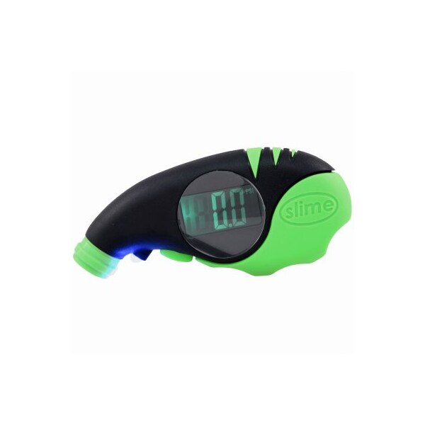 Slime Elite Digital Tire Gauge, used for cars or trucks, Bigger and brighter LCD screen 50 larger than most digital tire gauges, Super easy to read 5150 psi, Extreme accuracy with Slime's new Pressure Airlock Technology P A T , Ergonomic design with rubberized grip, Bright LED light for night use