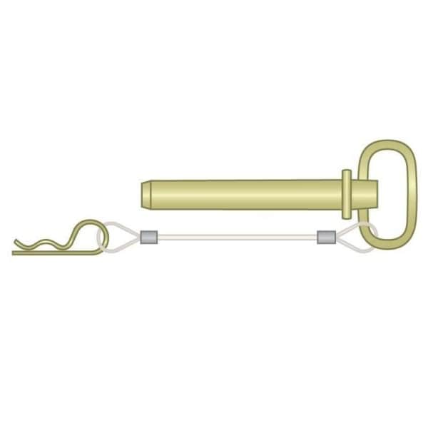 ITW Shakeproof Hitch Pin 3/4 x 6-1/4 Effective Length Carbon Steel Square Handle Zinc Yellow with 8 Inch PVC Coated Lanyard and Clip