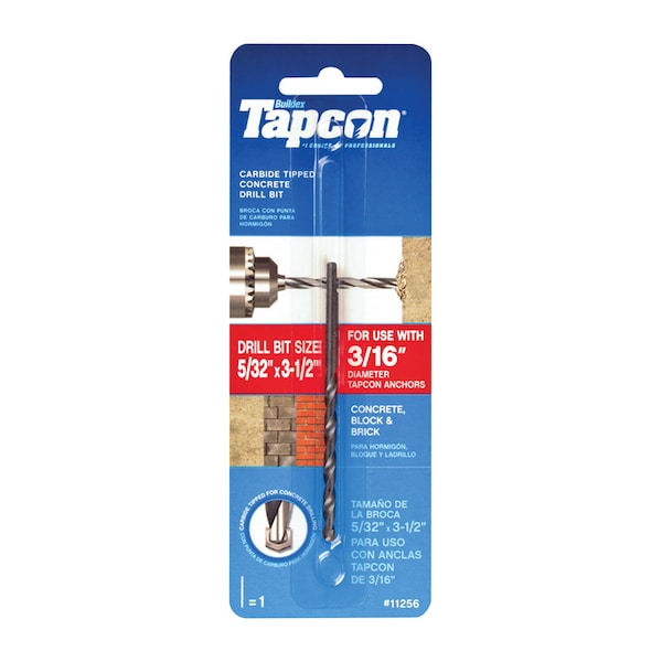 Used for drilling pilot holes in masonry including concrete, block and brick. Engineered to seamlessly work with Tapcon concrete screw anchors ensuring an accurate fit. Carbide tip increases strength and durability allowing for repeated use.
