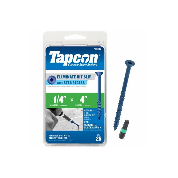25 Pack, 14 x 4, Tapcon Phillips Flat Head Concrete Anchors