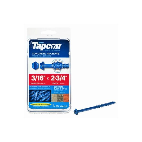 Tapcon, 25 Pack, 316 x 234 Hex Washer Head Concrete Anchors