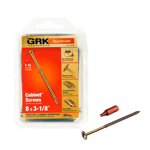 GRK Fasteners Low Profile Cabinet Screws' provide you typical applications include cabinet installation and construction, trim, moulding and door frames. These screws are thin enough to prevent most material splitting, while offering sufficient strength to guarantee a secure installation.