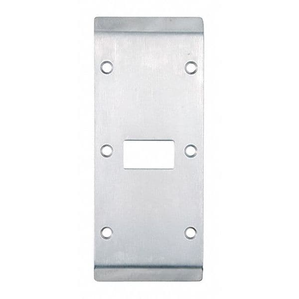 Door Strike Plate, Strike Type Curved Lip, Length 6 3/4 in, Width 2 5/64 in, Color Gray, Satin Stainless Steel Finish, Material Stainless Steel, Hardware Not Included, Standards ANSI/BHMA A1882, ADA Compliant Yes
