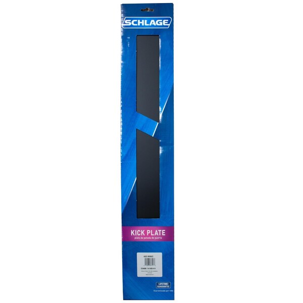 The IVES by Schlage 6x30 Kick Plate in Aged Bronze offers protection for the bottoms of doors subject to scuffing from foot traffic. The plate is available in multiple finishes to coordinate perfectly with other hardware in the home. The Aged Bronze finish is inspired by traditional design, featuring warm, copper tones that break through its darker, aged exterior.