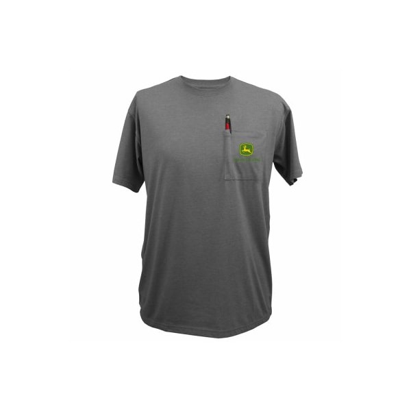Large, Charcoal, Men's Short Sleeve Pocket Tee Shirt, With John Deere Logo On Pocket, Cut Sew Construction, 100 Ring Spun Cotton Tag Less Neck For Ultimate Comfort With Superb Fit