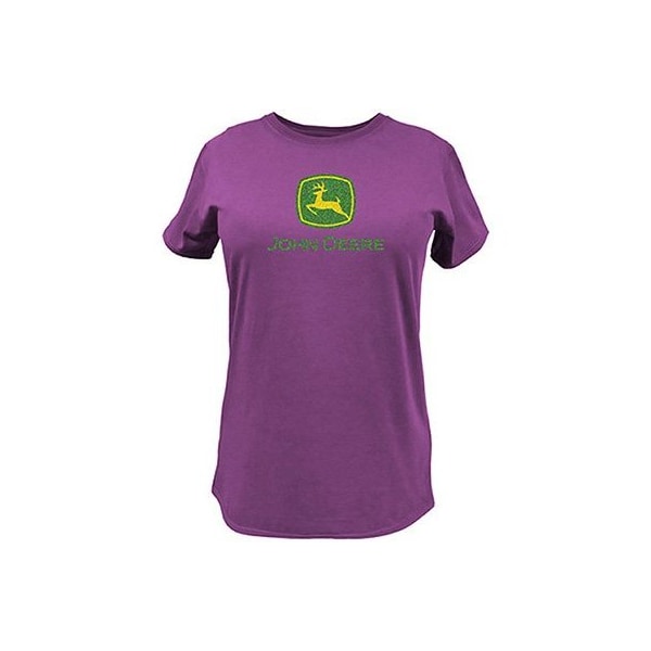 Large, Fuchsia, Ladies Short Sleeve Crew Neck Tee Shirt With Glitter John Deere Logo, Cut Sew Construction, 100 Ring Spun Cotton Tagless Neck For Ultimate Comfort With Superb Fit