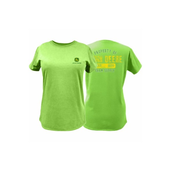 Large, Apple Green, Ladies Short Sleeve Crew Neck Tee Shirt With John Deere Trademark On The Front Left Chest Property Of John Deere Logo On The Center Back, Cut Sew Construction, 100 Ring Spun Cotton Tag Less Neck For Ultimate Comfort With Superb Fit