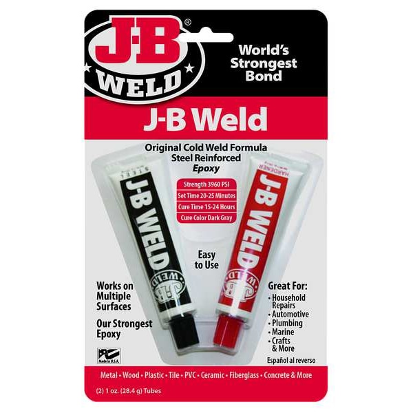 Epoxy Adhesive, Container Type Tube, Cure Method Ambient, Cured Color Dark Gray, Features Permanent Bond, Hardener Volume 1 fl oz, Included Components Resin and Hardener, Interior/Exterior Interior/Exterior, Low Odor No, Marine Grade No, Materials Bonded Concrete, Fiberglass, Masonry, VOC Content Weight Percentage Less Than 1 Percent, Water Resistance Water-Resistant, Working Time 4 hr, Maximum Application Temperature 120 Degrees F, Maximum Performance Temperature 550 Degrees F, Resin Type Epoxy