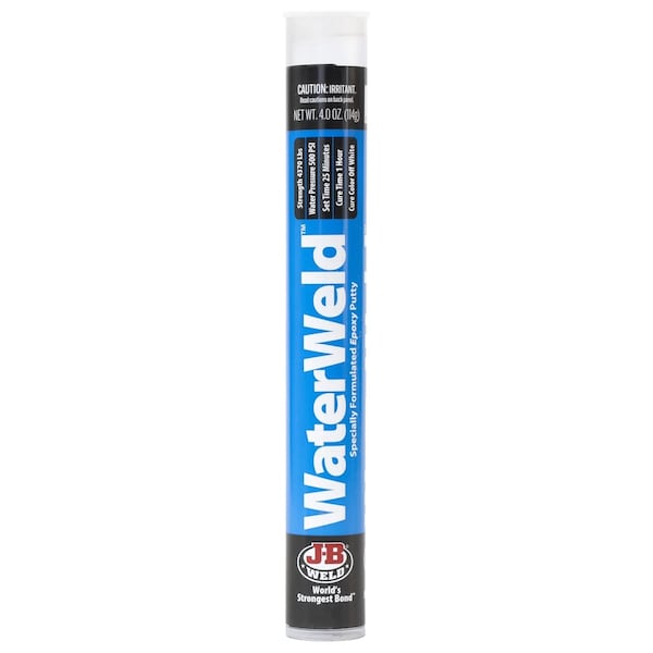Epoxy Repair Putty, Container Type Stick, Application Marine Repair, Base Material Epoxy, Color White, Container Size 4 oz, Full Cure Time 1 hr, Maximum Performance Temperature 250 Degrees F, Minimum Performance Temperature -40 Degrees F, Working Time 25 min, Finishing Features Paintable, Sandable, For Use On Surface Material Composite, Fiberglass, Metal, Plastic, PVC, Cure Type Water, Product Form Putty, Product Type Epoxy Putty