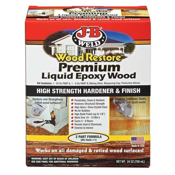 Hardener, Product Form Liquid, Color Clear, Container Size 32 oz, Container Type Box, Coverage Not Applicable, Cure Type Ambient, Environment Indoor, Finishing Features Not Applicable, Full Cure Time 1 day, Overall Length Not Applicable, Overall Width Not Applicable, Working Time 5 hr, Application Bartop, Countertop, and Tabletop Hardener and Finish, For Use On Surface Material Wood, For Use With Damaged and Rotted Wood Surfaces, Maximum Setting Time 5 hr, Mixing Ratio 1:1