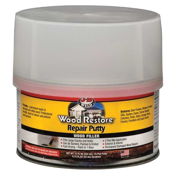 Putty, Container Type Can, Application Wood Repair, Base Material Epoxy, Color Light Brown, Container Size 12 oz, Full Cure Time 1 hr, Maximum Performance Temperature Not Applicable, Minimum Performance Temperature Not Applicable, Working Time 20 min, Finishing Features Paintable, Sandable, For Use On Surface Material Wood, VOC Content 175 g/L, Flash Point 104 Degrees F, Patching and Repairing Properties Quick Drying, Product Form Putty, Product Type Putty