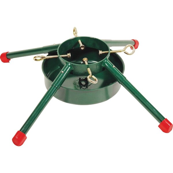 Large welded steel Christmas tree stand with quick assembly legs. Ideal for trees up to 12-feet tall with a 7-inch trunk. Features a 4-leg design with a 29.75-inch leg span and 1.7-gallon watercapacity. Welded steel construction for maximum strength. Tubular steel legs will not flex or bend under the load of heavy trees. Unique oversized bowl is easy-to-fill and holds more water.