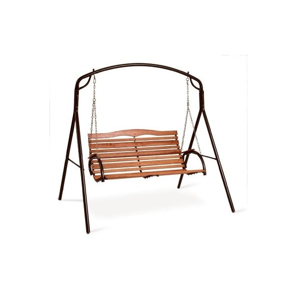Country Garden HiBack Swing Seat With Chains Steel oval tube frames are finished in a bronze powder coat Factory finished hardwood slats Easy to assemble Swing frame must be ordered separately, TV 814212 Assembled Size 27D x 51 W x 2434H
