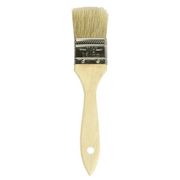 Flat Natural White Bristle Wood Handle Paint Brush, 1.5 in.