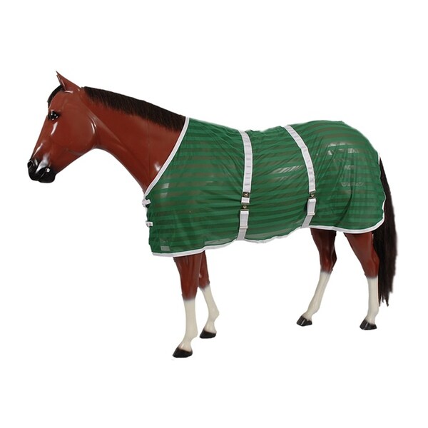 This lightweight 100% polyester Cool Mesh Fly Sheet features new design with sleek, ribbed look. Open front style with two outside surcingles for secure and comfortable fit. NOT RECOMMENDED OR DESIGNED FOR TURN OUT.This item is available with white trim only. For other colors of trim, please order #690.WASHING INSTRUCTIONS: Machine wash on gentle cycle with cold water using cold water detergent. Line dry. Do not machine dry. Do not dry clean. Intended for canine use only