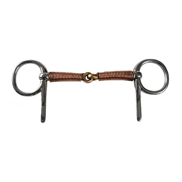 Stainless steel half cheek Snaffle Bit with a 5" copper wire wrapped jointed mouth.