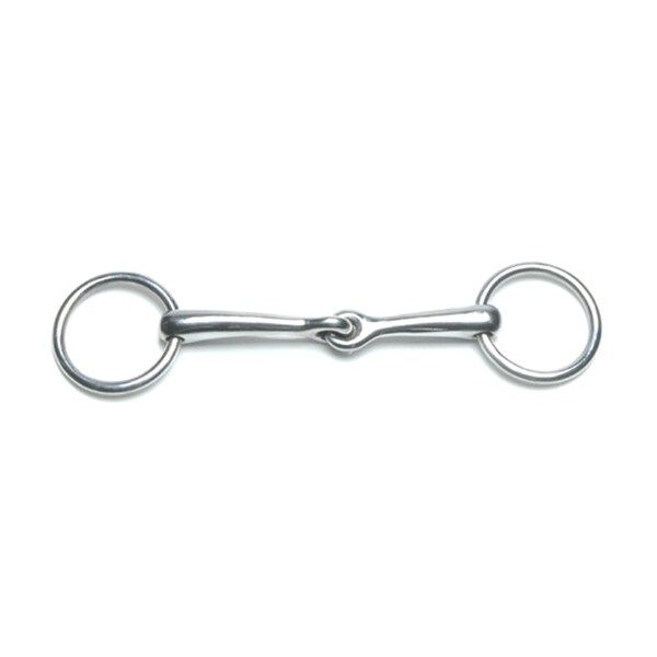 Stainless steel Curved Jointed Mouth Bit with 2-1/4" rings and a 5" jointed mouth with thickness of 9mm.