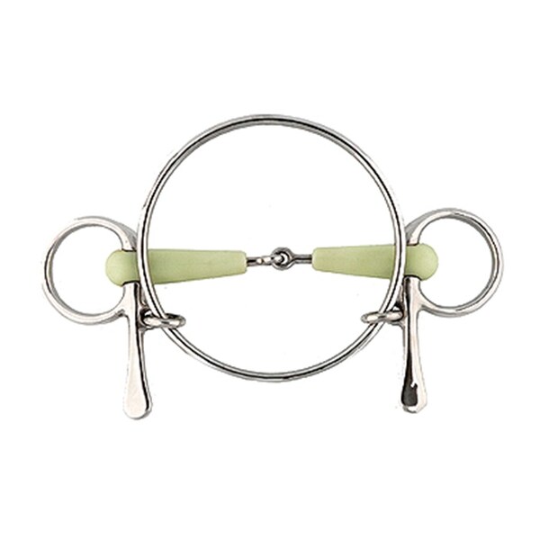 Stainless steel Dexter Apple Half Cheek bit with 5" jointed apple flavored mouth and 125mm large rings.