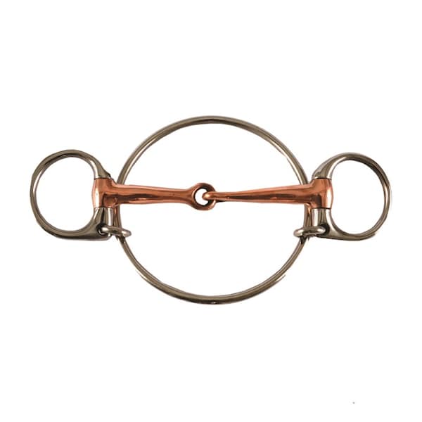 Stainless Steel Dexter Ring Racing Bit features a jointed copper mouth with mouth thickness of 13mm and 2" rings.