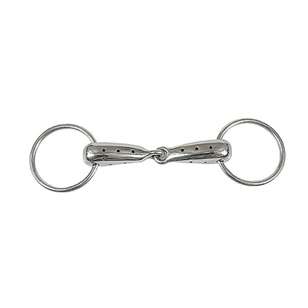Stainless Steel Hollow Mouth Loose Ring Snaffle Bit with ring size of 65mm and a jointed mouth with comfort holes and mouth thickness of 23mm.