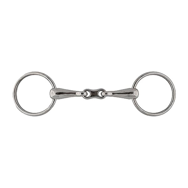 Snaffle bit with 2-1/2", 65mm stainless steel rings and french snaffle double jointed mouth with thickness of 19mm.