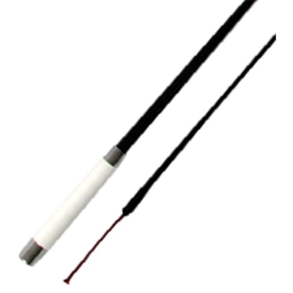 Whip for the frugal dressage rider. Molded white hand grip with chrome cap and fiberglass shaft.