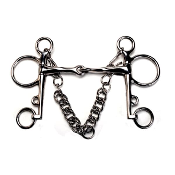 Stainless steel Pelham Bit with 4" cheeks and a jointed slow twist mouth with thickness of 15mm.