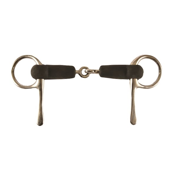 Nickel plated Half Cheek Snaffle Bit with 108mm half cheeks and a 5" soft rubber covered jointed mouth with thickness of 18mm.
