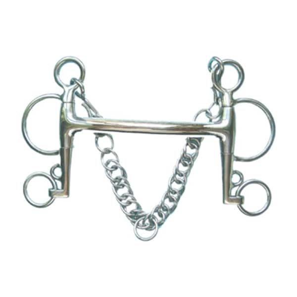 Stainless steel Pelham Bit with cheek length of 5" or 125mm, a Mullen Mouth with thickness of 14mm and 2-1/4" arm with curb chain.