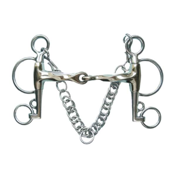 Stainless steel Pelham Bit with cheek length of 125mm and a twisted jointed mouth with mouth thickness of 15mm. Available in size 5-1/4" only.