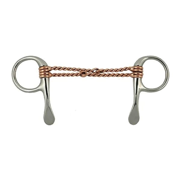 Stainless steel half cheek Double Copper Twisted Wire Snaffle Bit with a double jointed twisted 5" copper wire mouth.