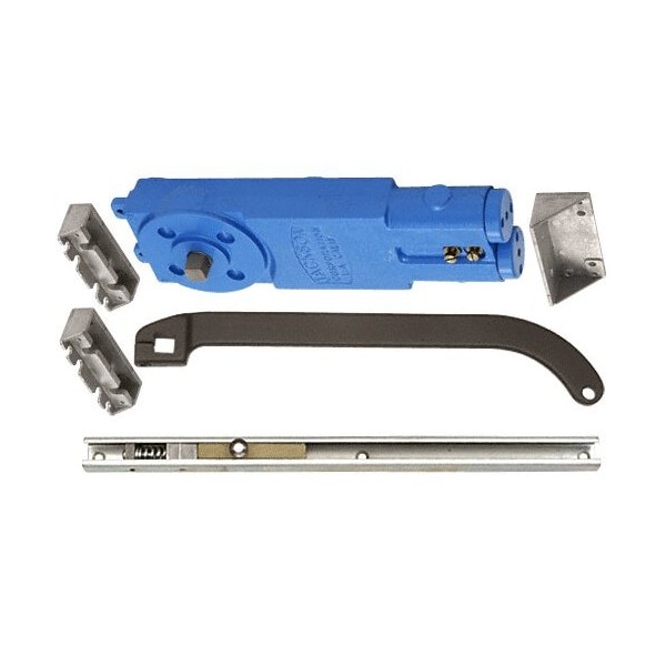 The CRL Jackson 21201 Series Overhead Concealed Closer with 'U' Offset Slide-Arm Hardware Package consists of a Spring Power Adjustable Closer mechanism, which depending on the selected spring size and closer function, is suitable for a range of doors from 30 to 42 762 mm to 1.07 m wide. The Closer is packaged complete with Cat. No. 201387 Mounting Clips, 20942 Offset Arm Package, 20368 Slide Channel, and complete installation instructions. The Closer has dual independent valves for closing operation one valve for closing, one valve for latching. 90Deg and 105Deg, Hold Open and No Hold Open models are available. Closers fit into standard 1-3/4 x 4 or larger header extrusions.