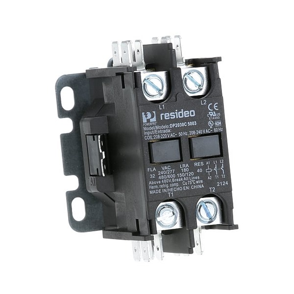 Relay, [ 2 Poles] [30 Amps] [208/240V ] ;[ 1/4" Male Tab Terminals] [ 1-5/8" Mt Ctrs ] [Honeywell ];Jackson Dishwasher 10, 24
