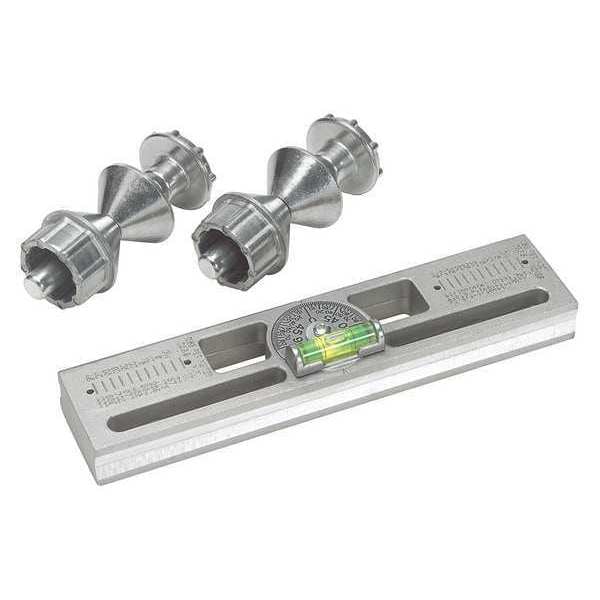 Universal Leveler, Product Type Flange Leveler, Minimum Flange Thickness Not Applicable, Maximum Flange Thickness Not Applicable, Minimum Bolt Diameter Not Applicable, Maximum Bolt Diameter Not Applicable, Maximum Flange Capacity Not Applicable, Spread Not Applicable, Features (2) Threaded Self-Aligning Conical Spacer and Conical Nut and Bolt Units, Deep Cast-In Grooves for Self-Centering on the Contour of the Pipe, 360 Degrees Adjustable Protractor Dial Bubble, Cast-In Magnets