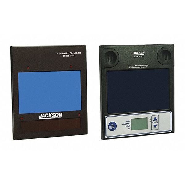 Auto Darkening Filter, Compatible with Brand Jackson Safety, Compatible Grainger Part Number 2KUV2, 2KUV3, 35MC45, Compatible Manufacturer Part Number 46148, 46149, 46151, 46152, 46154, 46156, Compatible with Series Nexgen, Features Amber View Lens Allows For Enhanced Clarity Of Weld Puddle, Four Independent Sensors Positioned To Reduce Possibility Of Blockage During Weld, Mirror Not Included, Sensitivity And Delay Adjustments, Torch And Grind Mode Options, Variable Shade