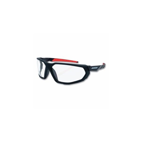 Hyperguard Safety Glasses, Clear, Polycarbonate, Anti-Fog, Black Full Frame, Red Temple