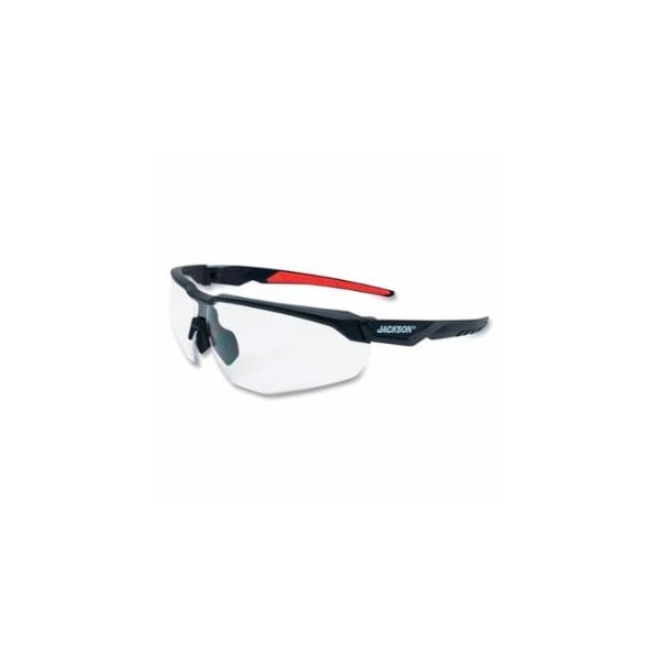 Hyperguard Safety Glasses, Clear, Polycarbonate, Anti-Fog, Black Half Frame, Red Temple