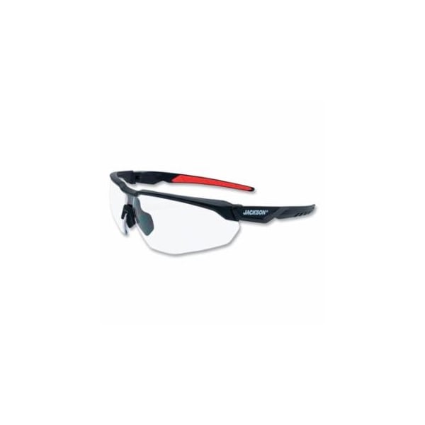 Hyperguard Safety Glasses, Clear, Polycarbonate, Hard Coated, Black Half Frame, Red Temple