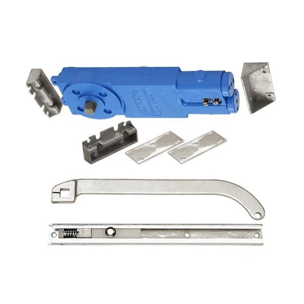The CRL Jackson 21201 Series Overhead Concealed Closer with P Offset Slide-Arm Hardware Package consists of a Spring Power Adjustable Closer mechanism, which depending on the selected spring size and closer function, is suitable for a range of doors from 30 to 42 762 mm to 1.07 m wide. The Closer is packaged complete with Cat. No. 20118 Mounting Clips, 201133 Offset Arm Package, 201129 Slide Channel, and complete installation instructions. The Closer has dual independent valves for closing operation one valve for closing, one valve for latching. 90Deg and 105Deg, Hold Open and No Hold Open models are available. Closers fit into standard 1-3/4 x 4 or larger header extrusions.