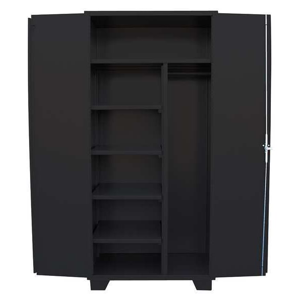 Combo Wardrobe Storage Cabinet, 78 in H, 36 in W, 24 in D, Swing, Padlock Hasp, Black, 5 Shelves
